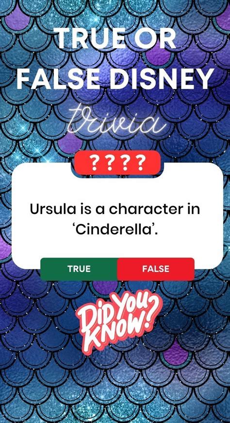 Disney True Or False Questions And Answers List. In the little mermaid, ariel almost had a dolphin sidekick, instead of flounder. What year did disneyland open?